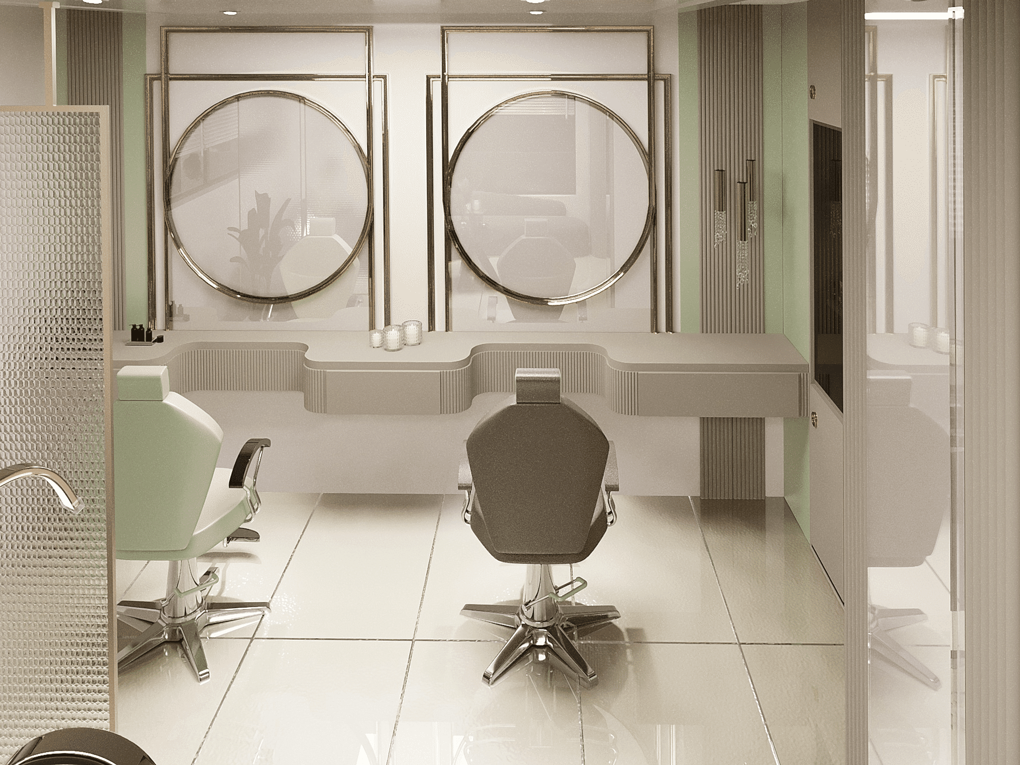 The basement of Saraç Hair and Beauty Salon is designed as a dedicated space for specialized services such as manicures and pedicures, bridal makeup, and laser hair removal. Great importance was placed on the use of natural light in the basement, creating a bright and airy atmosphere. Due to the structure of the basement, artificial lighting systems were also meticulously planned to ensure each area receives adequate light and offers a comfortable working environment. This floor is also equipped with advanced ventilation systems, ensuring that clients always enjoy a clean and refreshing environment.